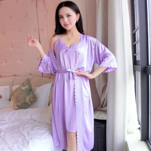 2 pcs/Set Women's Nightgowns Exquisite Sleepwear for Ladies - Purple