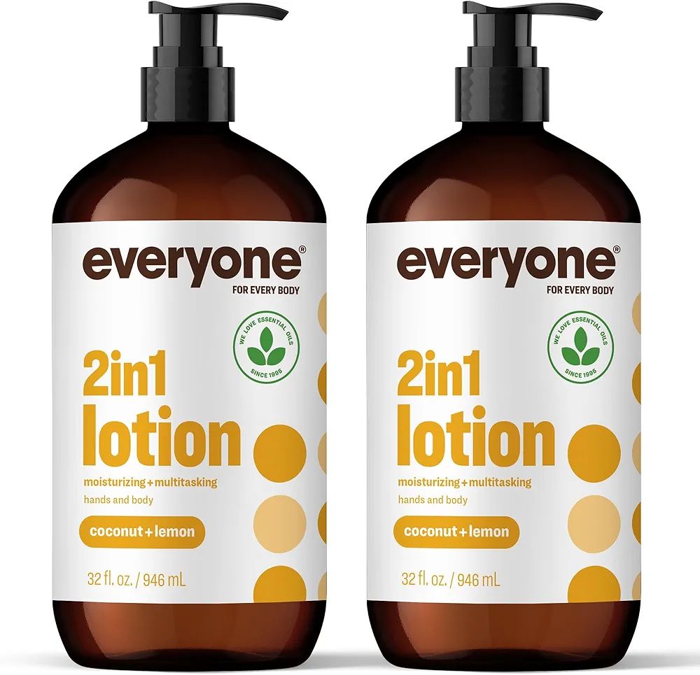 Everyone 2-in-1 Lotion for Hands/Body, 32 ounce (Pack of 2) Coconut and Lemon made with Essential Oils for Men and Women