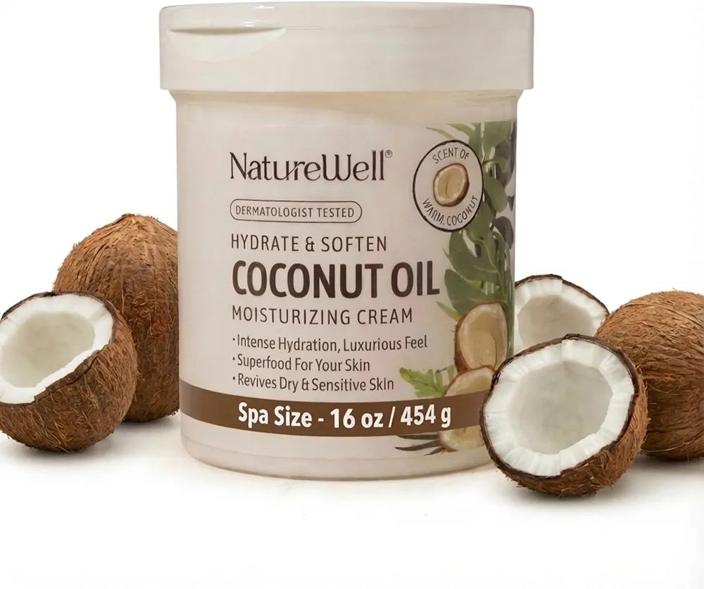 NATURE WELL Hydrate & Soften Coconut Oil Moisturizing Cream for Face, Body, & Hands, Non-Greasy, Intense Hydration & Luxurious Feel, Revives Dry & Sensitive Skin, Superfood for Your Skin, 16 Oz
