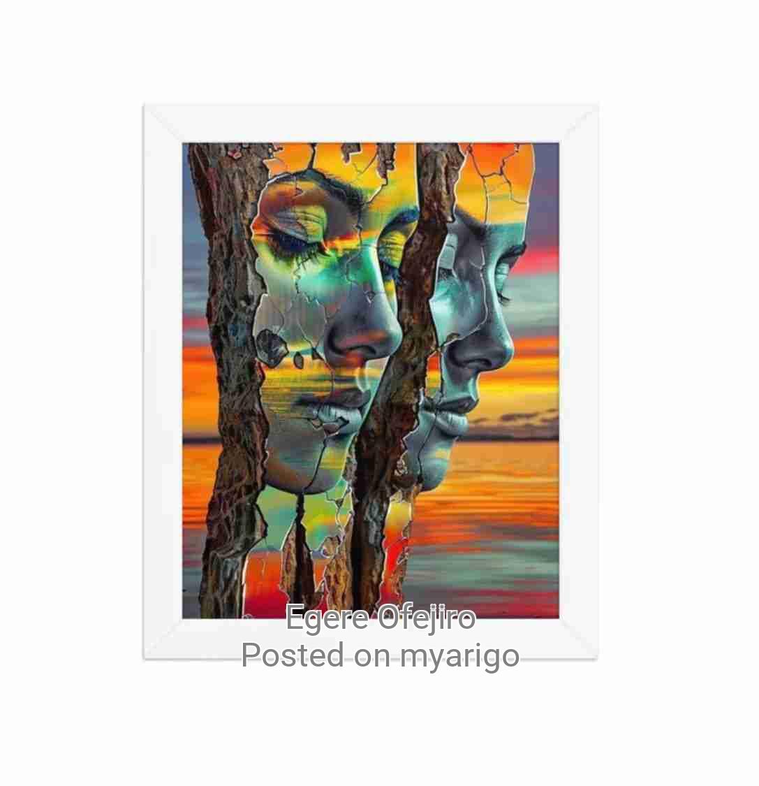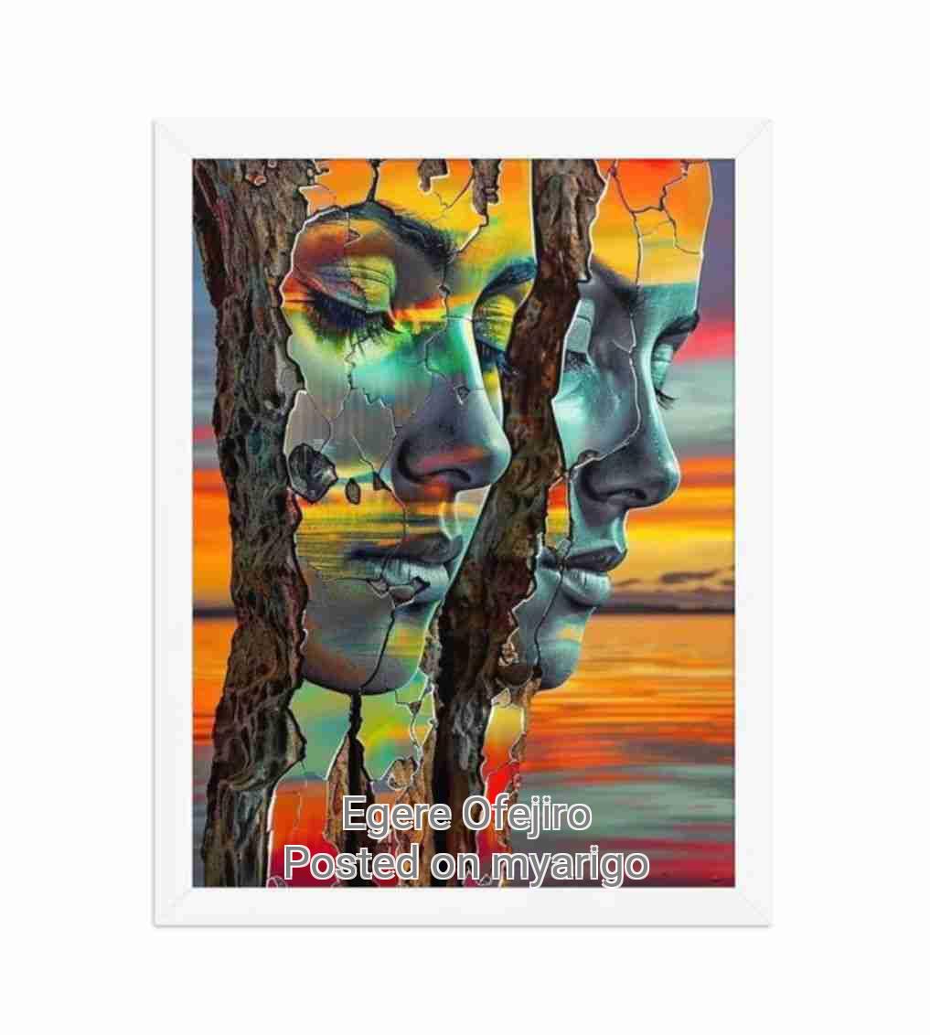 She carries the entire skies beneath her skin. One half drenched in the fire of sunsets, the other cloaked in grayscale silence