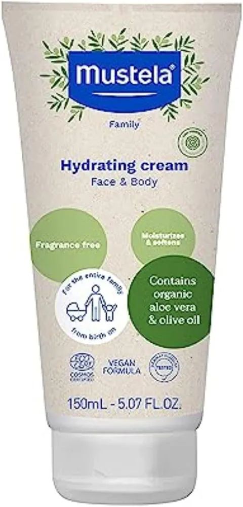 Mustela Certified Organic Hydrating Cream - Natural Body Lotion w/ Olive Oil, Aloe Vera & Sunflower Oil - For Baby, Kid & Adult - Fragrance Free, EWG Verified & Vegan - 5.07 oz. - Packaging may vary